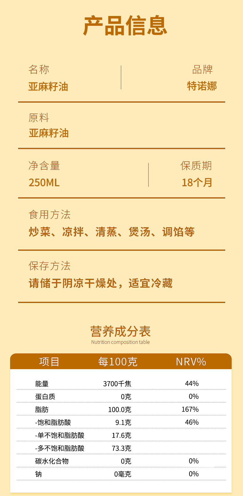 食品饮料> 休闲食品> 特诺娜亚麻籽油250ml双瓶组合 250ml*2【包邮】GM29903693